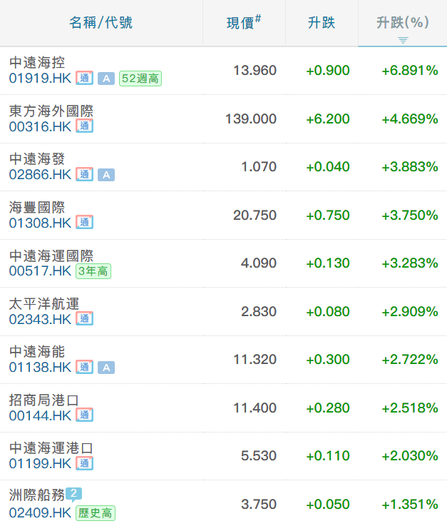 #行情 港股航运股集体上涨,中远海控大涨8%至14港元。东方海外国际一度涨5% https://t.co/lVxVzvujPX