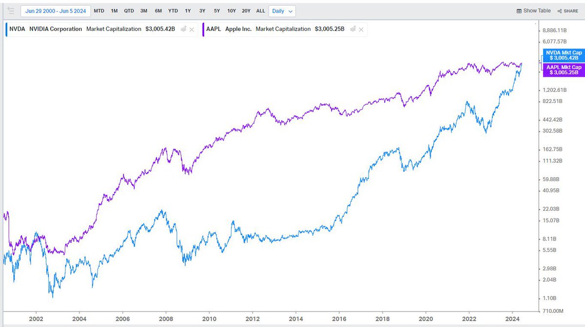 英伟达加入3万亿美元市值俱乐部,超越苹果成为美国市值第二大公司,仅次于微软。