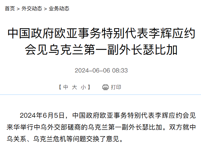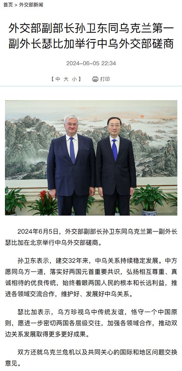 中国外交部:外交部副部长孙卫东同乌克兰第一副外长瑟比加在北京举行中乌外交部磋商。中国政府欧亚事务特别代表李辉应约会见瑟比加。 https://t.co/pUyPG81N6h