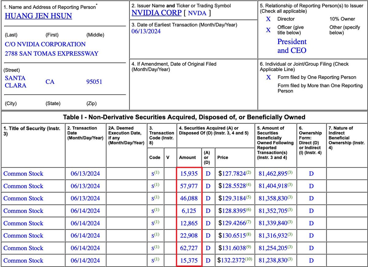 黄仁勋此次所出售股份仅占其直接持股总数的0.3%。 https://t.co/z1JrlMw2ls