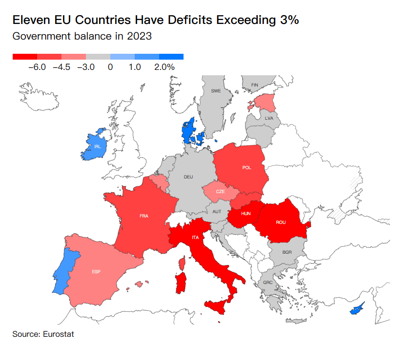 欧盟执行机构欧盟委员会预计将在周三宣布违反债务规则的名单,法国、意大利、波兰、斯洛伐克、匈牙利、罗马尼亚等七国将会因赤字占经济总量的3%以上而收到警告。