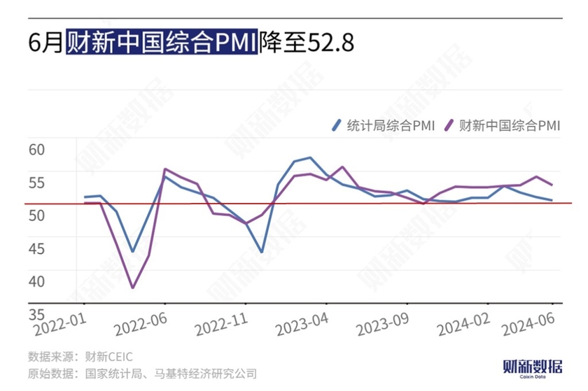 财新综合PMI为52.8,前值54.1。