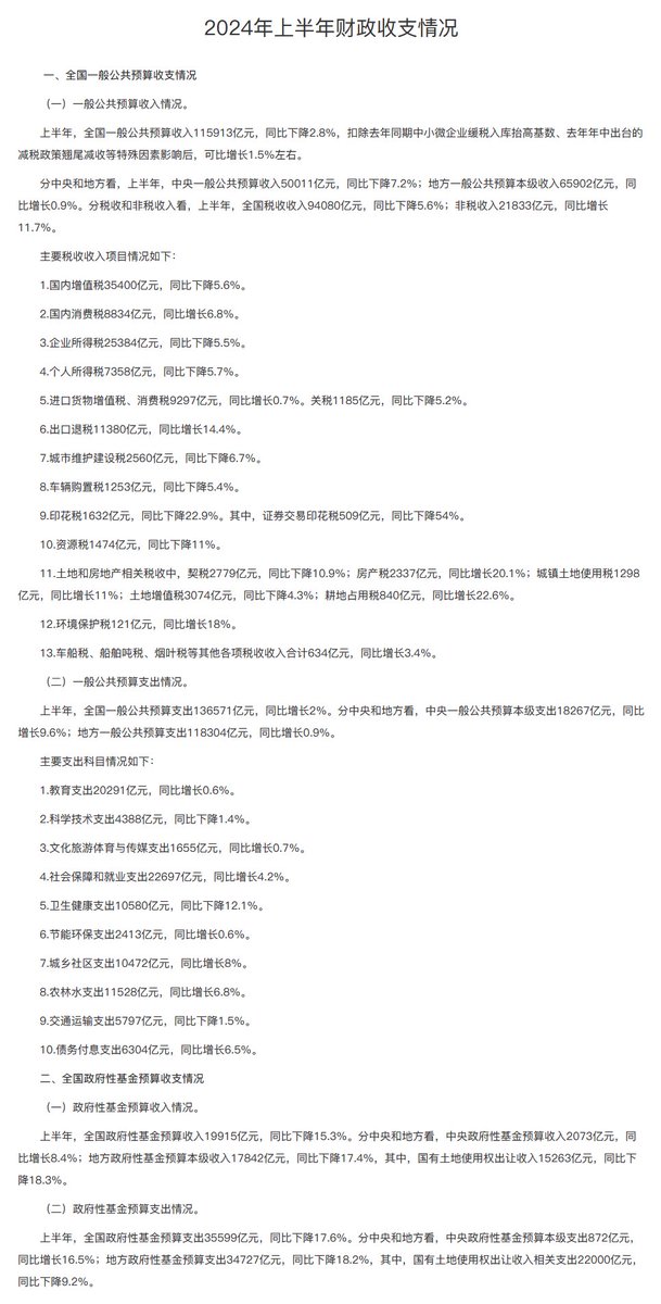 #数据 财政部:全国一般公共预算收入115913亿元,同比下降2.8%,可比增长1.5%左右。其中中央收入50011亿元,同比降7.2%,地方收入65902亿元,同比增长0.9%。