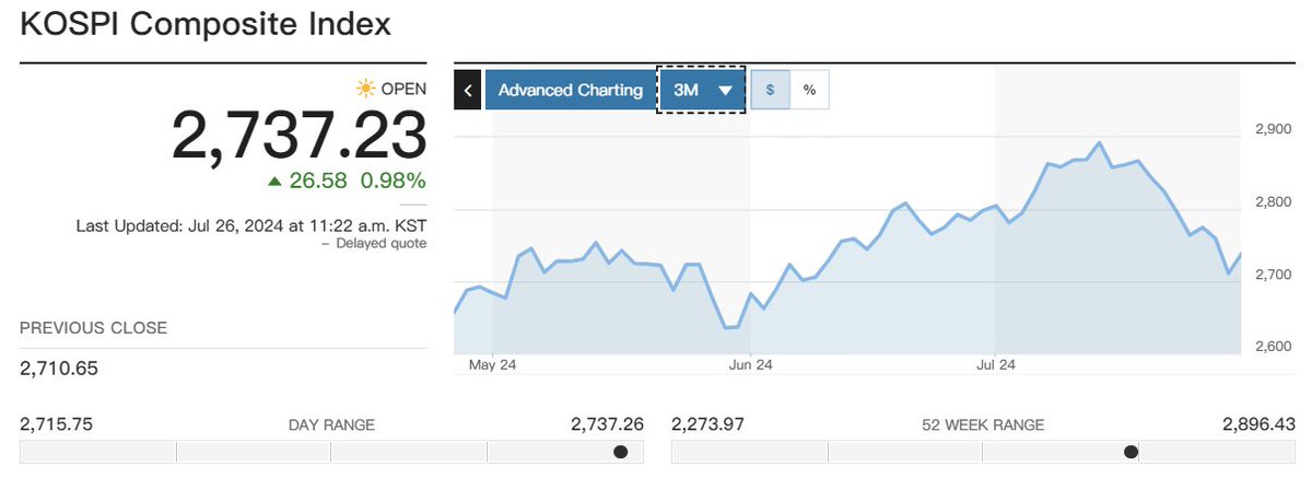 #行情 韩国KOSPI指数升1%,暂时从最近一个多月的低位中反弹。