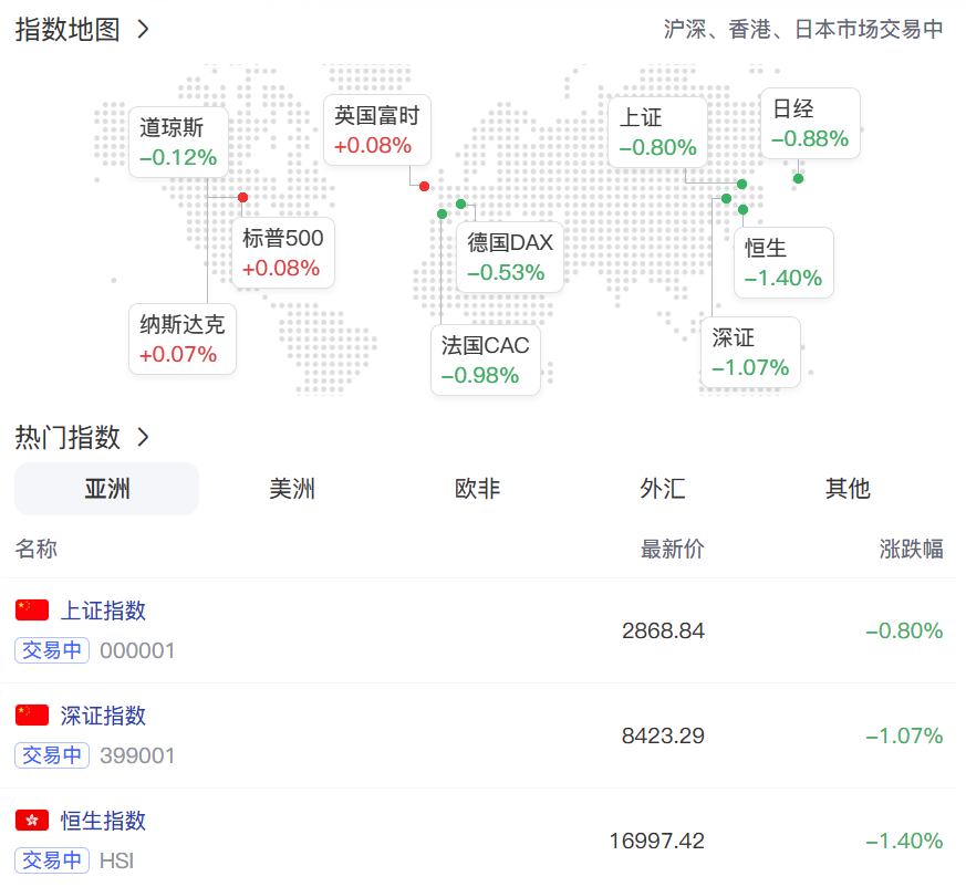 #行情 亚洲股市周二普跌。恒指失守17000点,跌1.4%至4月以来新低。沪指跌0.8%,深成指跌1%。