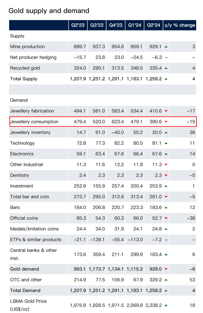 世界黄金协会(WGC):不包括场外交易的全球第二季黄金需求同比下降6%至929公吨,因金价高企导致黄金饰品消费锐减19%。今年4-6月黄金饰品行业的黄金消费量为2020年以来同期最弱。