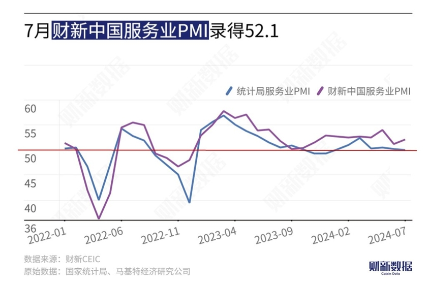 中国7月财新服务业PMI为52.1,预期51.5,前值51.2。