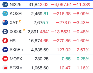 #行情 日经225指数跌幅进一步扩大至11.3%,创1987年以来最大单日跌幅。 https://t.co/VCtv9D5WDp