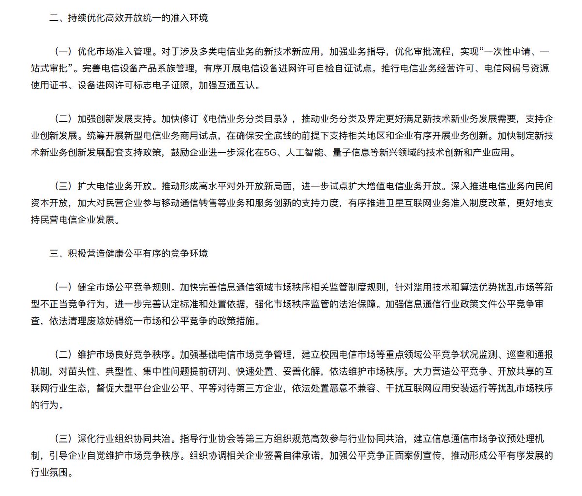 工信部《关于创新信息通信行业管理优化营商环境的意见》: