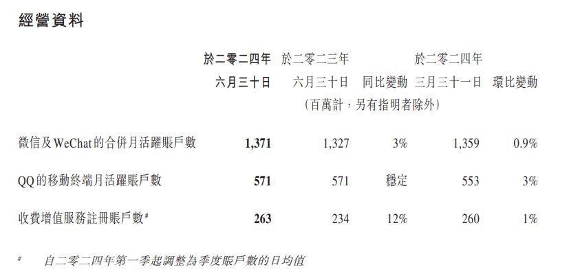 微信及WeChat合并月活账户数13.71亿,同比增长3%;