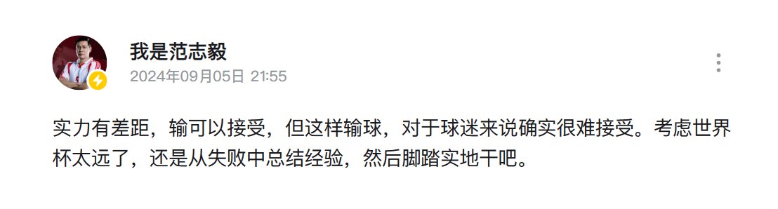 针对这场比赛,范志毅时隔3年首次在B站更新动态,表示中国男足“考虑世界杯太远了”。 https://t.co/NrkKcIVc4C