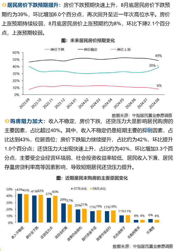 中指研究院8月居民置业意愿调查报告显示,居民短期政策预期出现明显回落,政策放松预期占比约31%,环比下降11个百分点。
