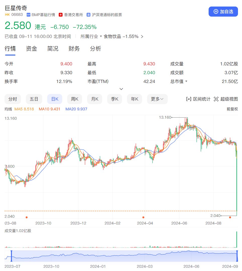 “周杰伦概念股”巨星传奇今日暴跌逾七成,曾四度触发市调机制,跌破发行价。(巨星传奇为恒生综合小型股指数成份股,5分钟内波幅超过20%会触发市调机制)