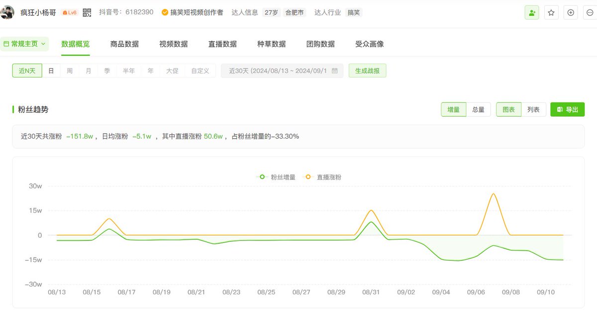 疯狂小杨哥(张庆杨):抖音粉丝超1亿,与辛有志因带货大闸蟹事件陷入纠纷,近1个月掉粉超150万。纠纷源于辛有志自称被小杨哥举报,导致其所售大闸蟹礼品卡无法补货(目前双方争论停留在口头争议层面,均未列出明确事实性证据)。今年央视3.15曝光的梅菜扣肉“槽头肉事件”未令小杨哥及“三只羊”受到处罚,合肥市监局表示三只羊只发布广告,并非生产者与销售者。