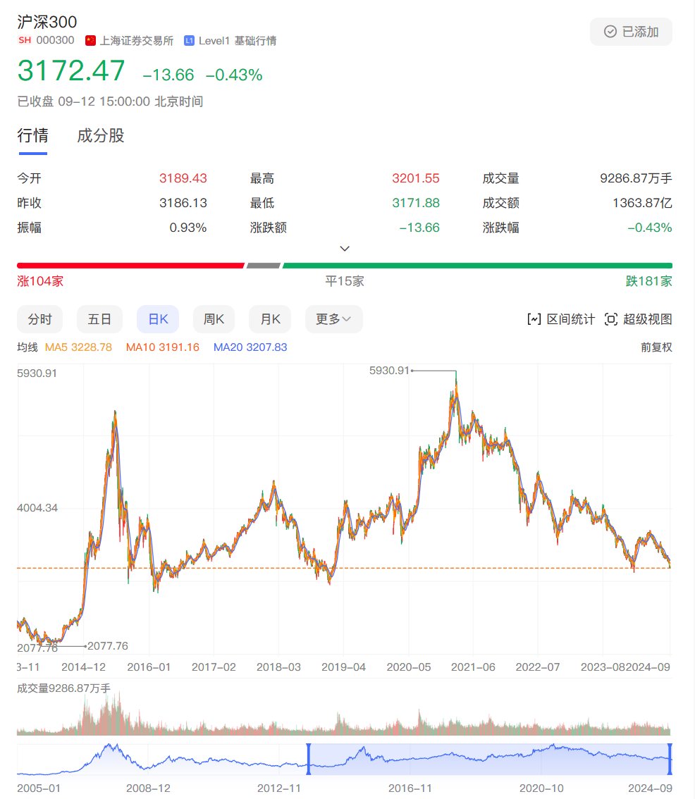 #A股 #行情 沪深300指数收于3172.47点,为2019年年初以来最低收盘水平。