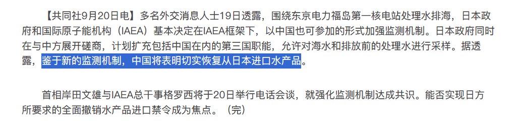 据日本共同社消息,外交人士称中国将表明恢复从日本进口水产品。 https://t.co/g6Gbr2G4lM