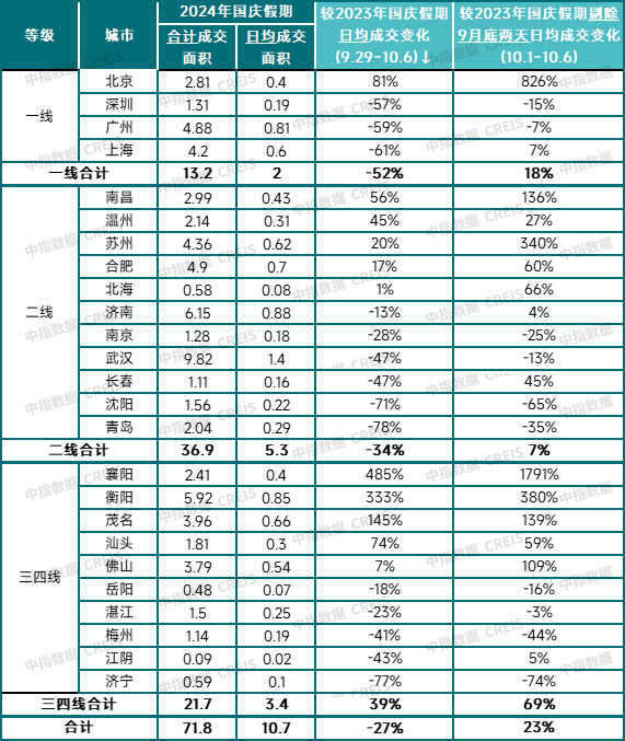 中指研究院:从网签情况来看,国庆假期期间(10.1-10.7)25个代表城市新房日均成交面积较去年假期(9.29-10.6)下降约27%。若剔除9.29-9.30这两天网签量较高的影响,今年假期前六天增约23%。 https://t.co/6UMG3slKnh