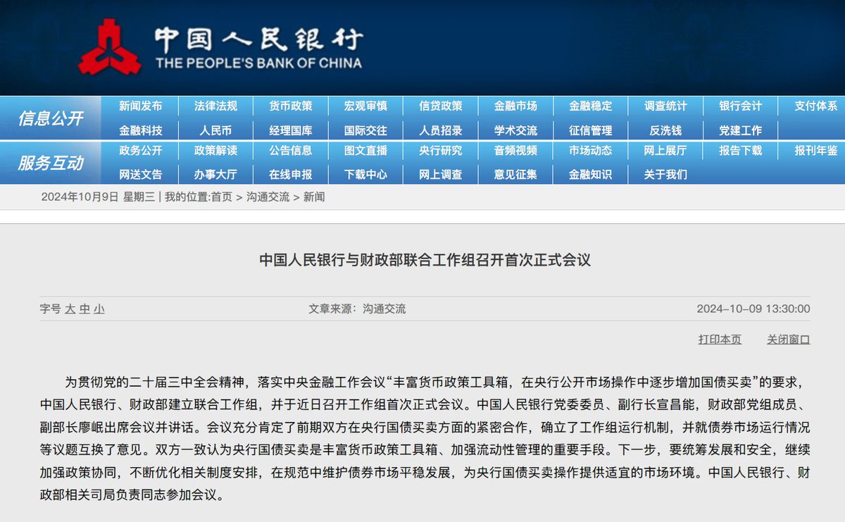 会议确立了工作组运行机制,并就债券市场运行情况等议题互换了意见。双方一致认为央行国债买卖是丰富货币政策工具箱、加强流动性管理的重要手段。 https://t.co/2MgjJQDjoG