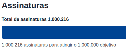 22 países da UE a mais de 100%. 1 milhão e 216 assinaturas. A 27 dias do limite.