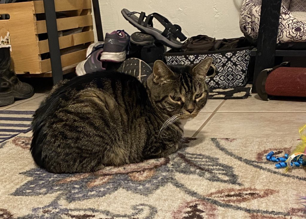I am finally being allowed to take a look at the cat human brought home. But I haven’t gotten a good sniff. So I don’t know if it’s Gus or not. I haven’t hissed at him, but I did hiss at the comforter he slept on