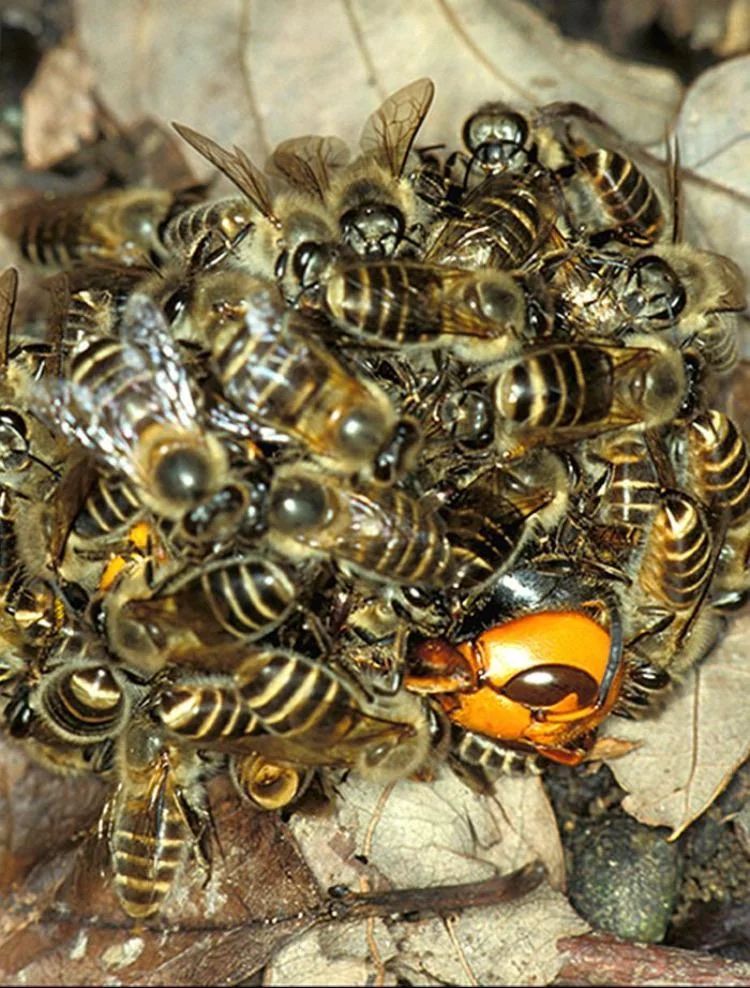 Bees killing a murder hornet by raising their temperature in order to cook it alive. https://t.co/iFdhit8yfO
