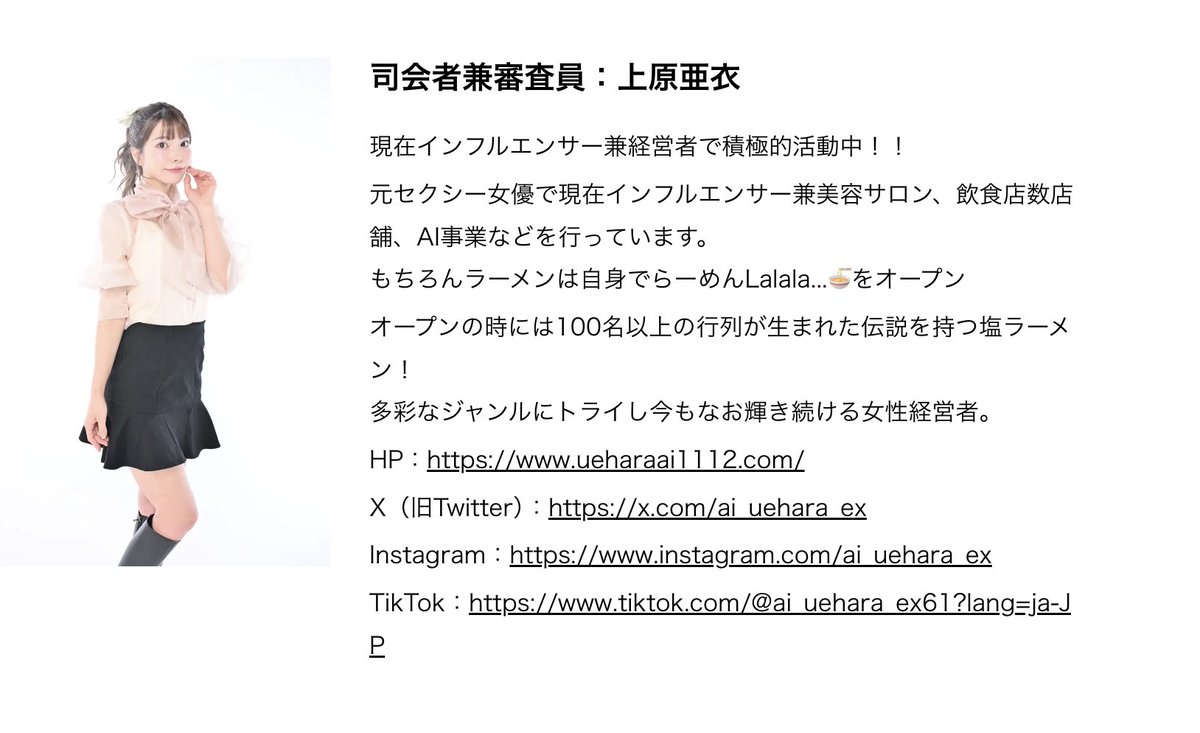 22日的特别评审会,将由知名YouTuber Raphael和上原亚衣主持,届时将在YouTube上现场直播,欢迎大家围观,见证拉面界新星的诞生!