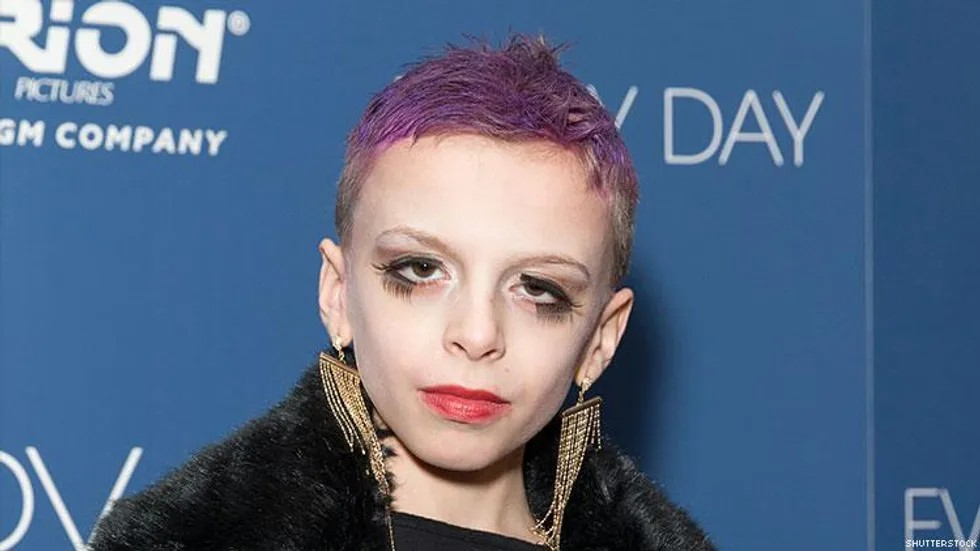 Drugged, caked in brightly colored makeup and wearing the expression of somebody who's been forcibly fucked in the ass on daily basis.