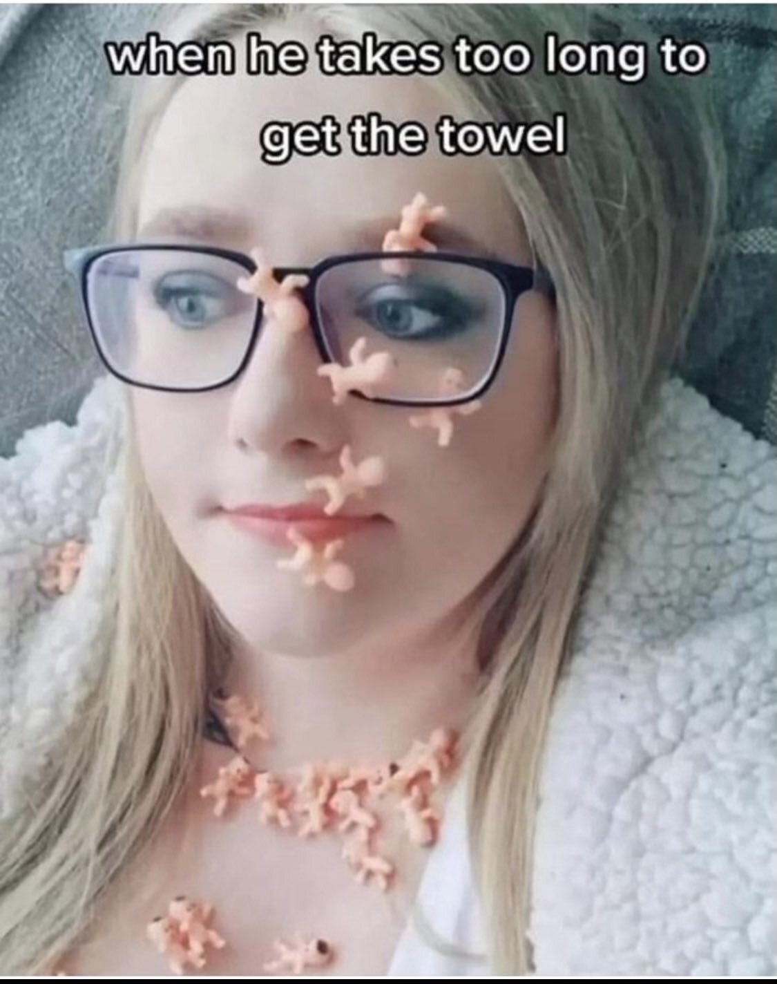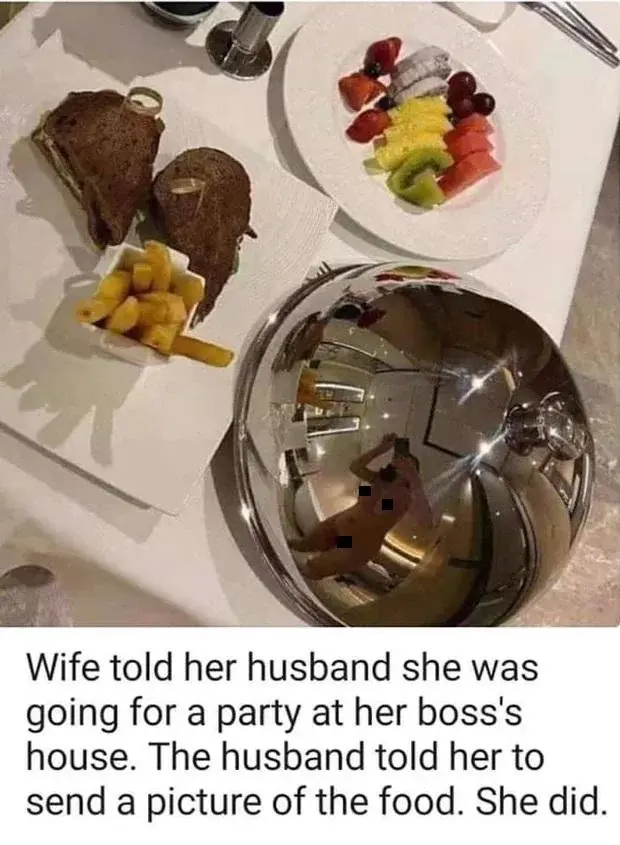 hubby is insecure, everyone know you take your clothes off to eat so that you don't get FOOD on your CLEAN clothes