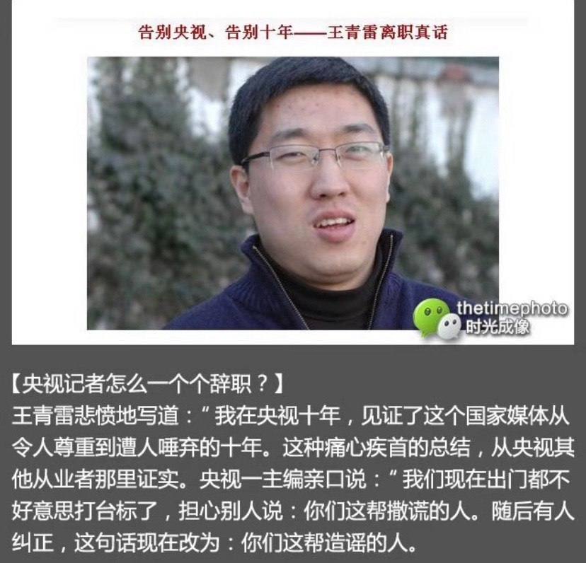 CCTV离职的工作人员王青雷,在离职后悲愤地写道—— https://t.co/GCNDOC7A20