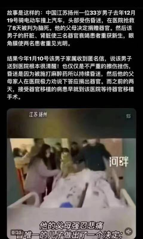 中共国人矿名副其实! 网爆中共国江苏扬州某医院,为获取器官竟然将一受伤入院男子一直用麻醉药麻醉,然后劝说其父母成功捐献器官!后被知情者匿名告知其父母! https://t.co/ZmRYlMr40J
