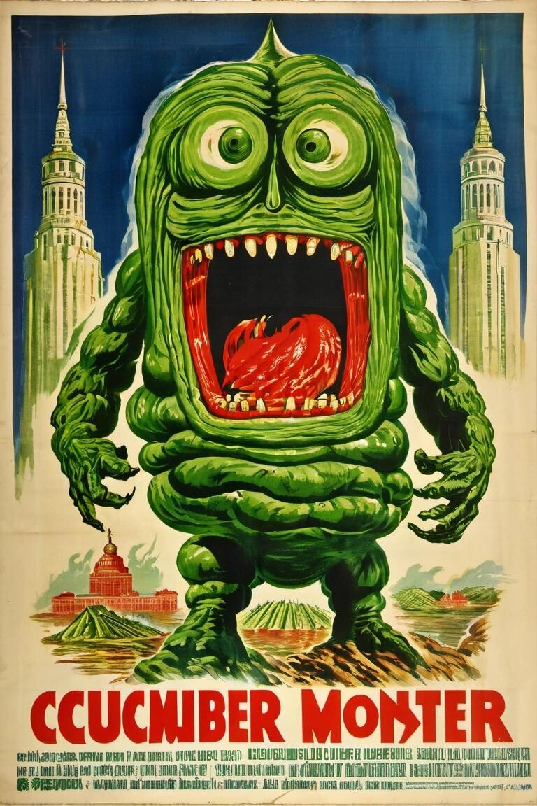 Prompt: a cucumber monster