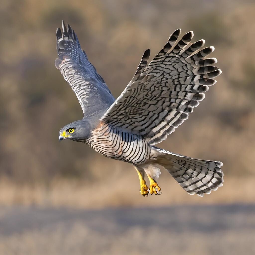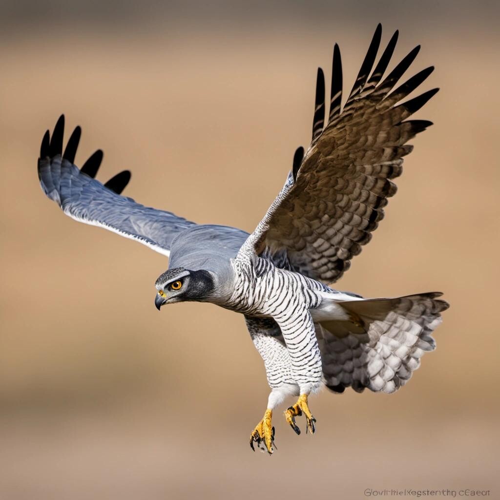 Prompt: Accipiter gentilis, the northern goshawk, in fligh