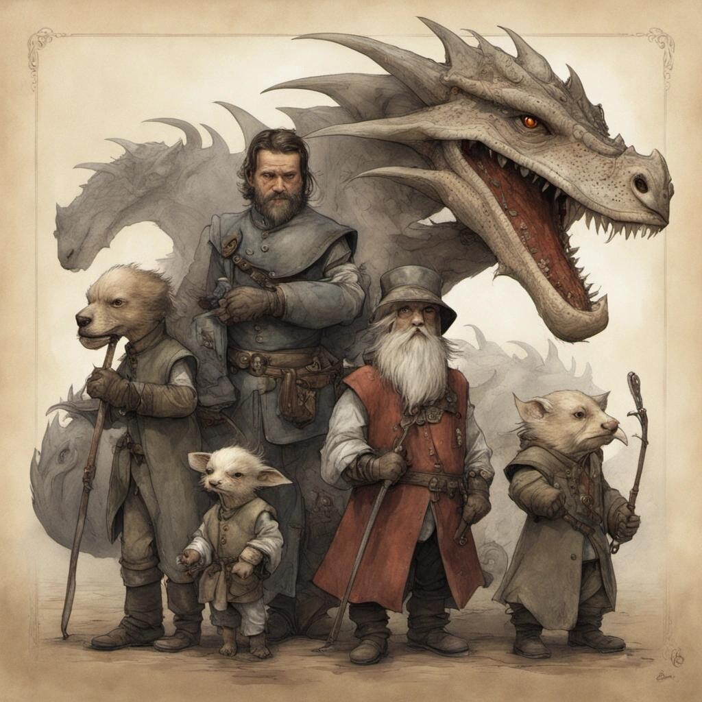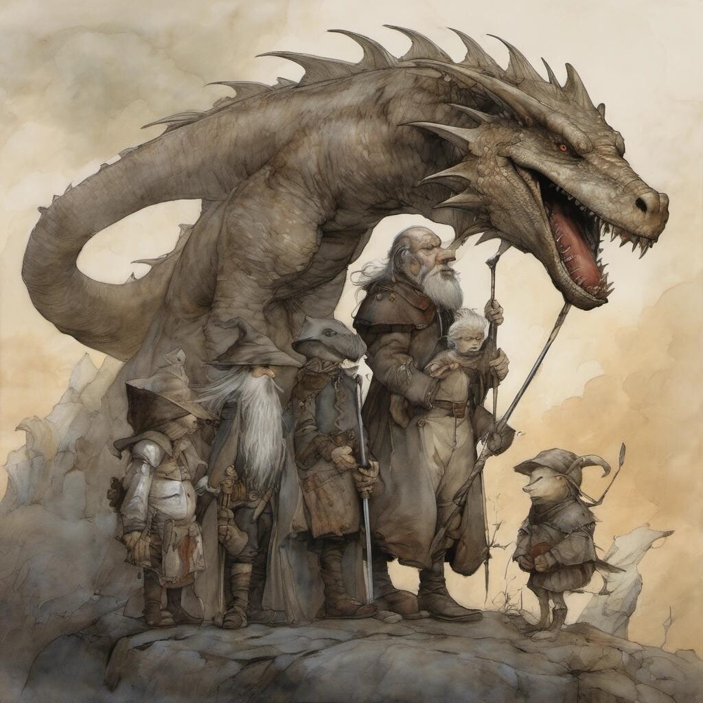 nostr:npub1p5qe4mtwxascahtp6szght2nlp06gwwwwllq7e7g6308p4y9dvys8nw2sf draw for me The King of the Dwarves