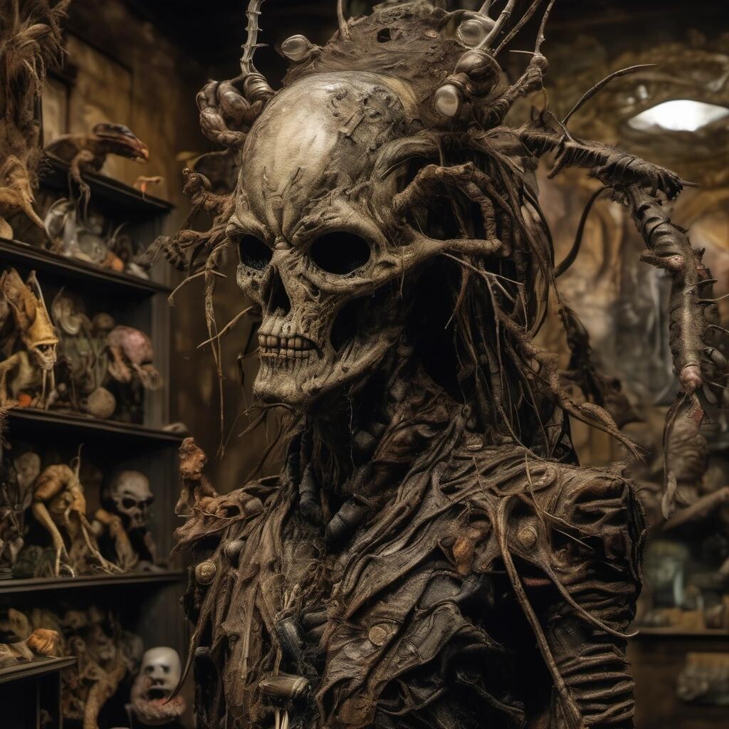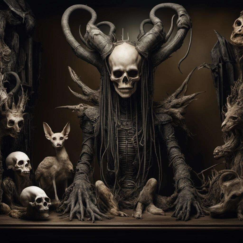 Prompt: Cryptid Taxidermy in post apocalyptic wonderland, in heaven everything is fine by lady in the radiator and brothers quay, stopmotion cinema photograph by H.R. Giger, by Giuseppe Arcimboldo, Hieronymus Bosch, Art Nouveau, intricately detailed, hyperrealism, fantasy, imperial colors