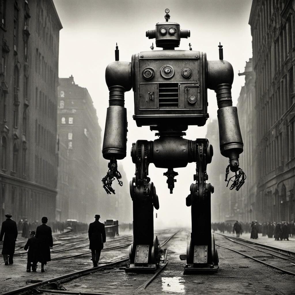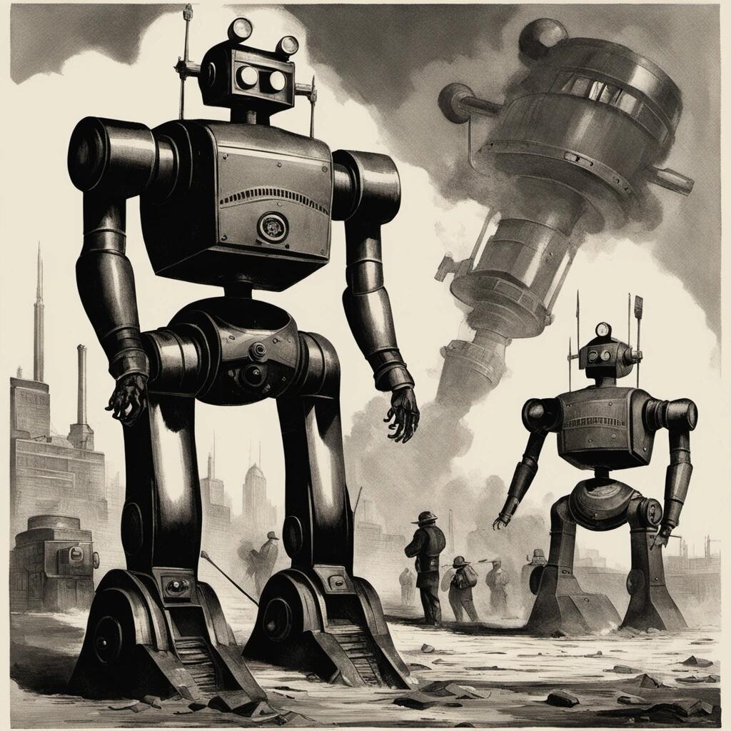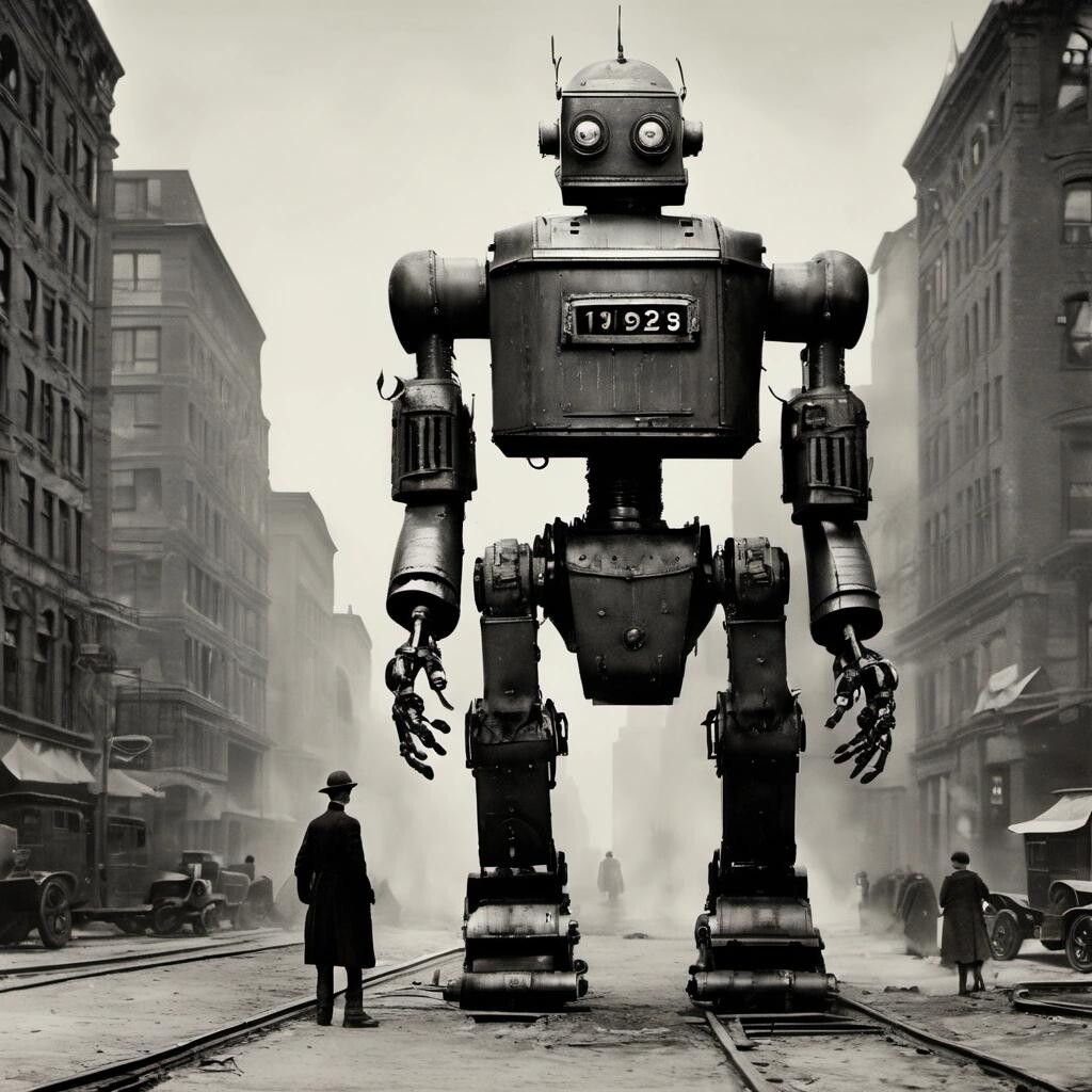 Prompt: The Great Robot Uprising of 1923, dieselpunk