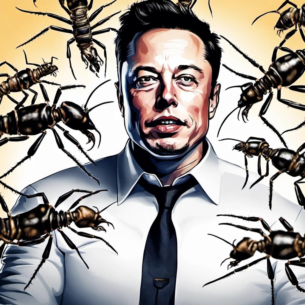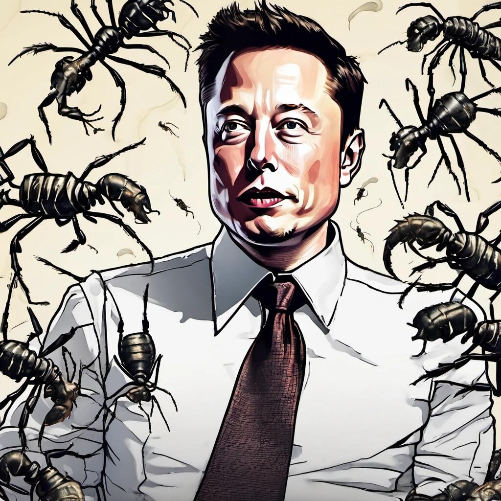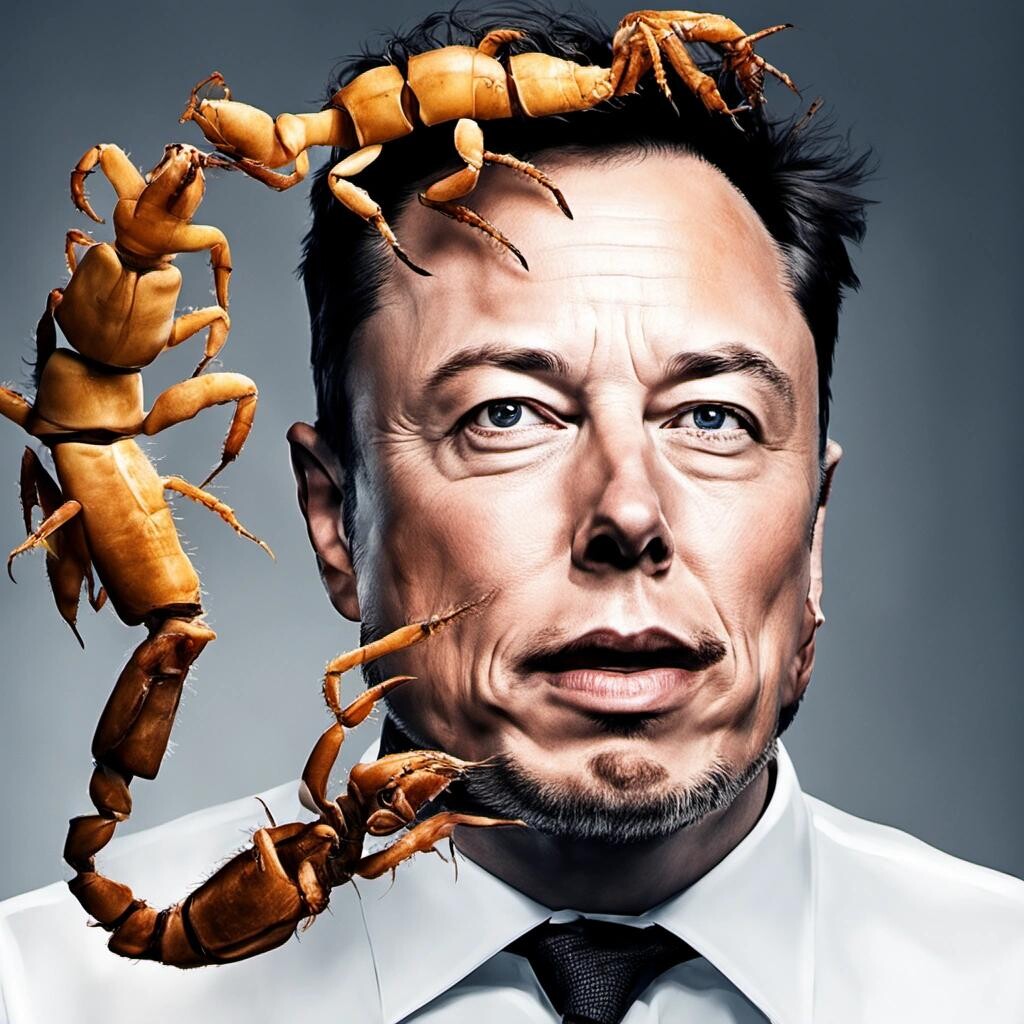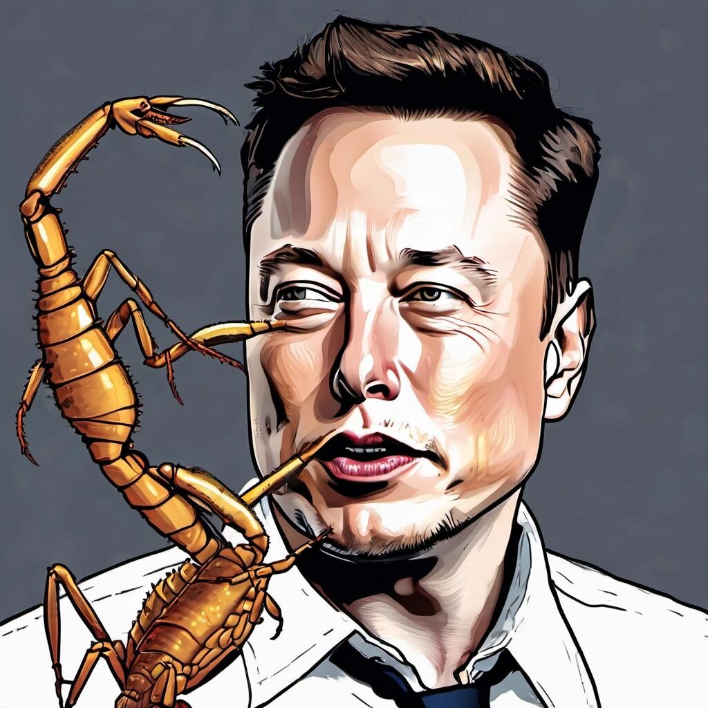 Prompt: elon musk suffering because he is being stung by a scorpion