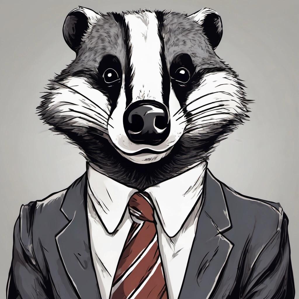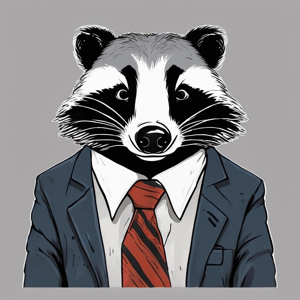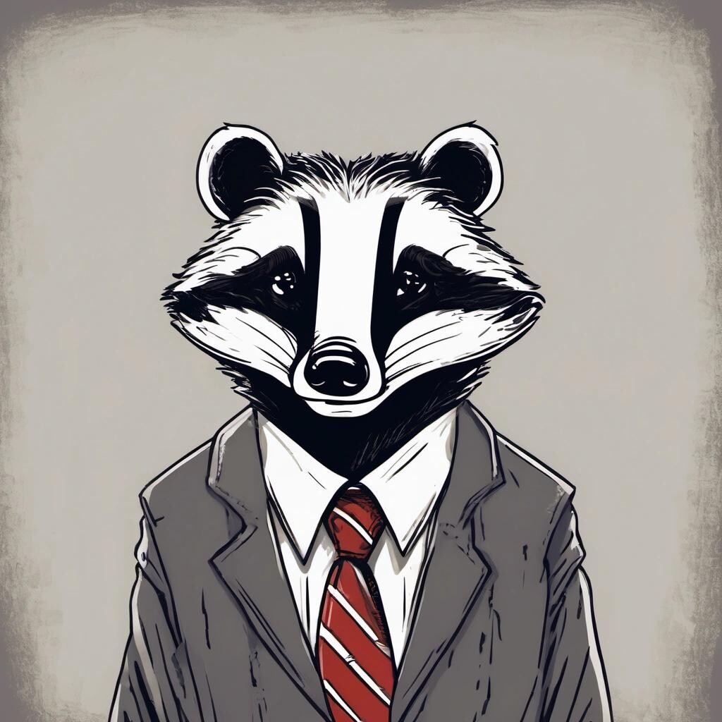 Prompt: a very worried looking anthropomorphic badger wearing a necktie