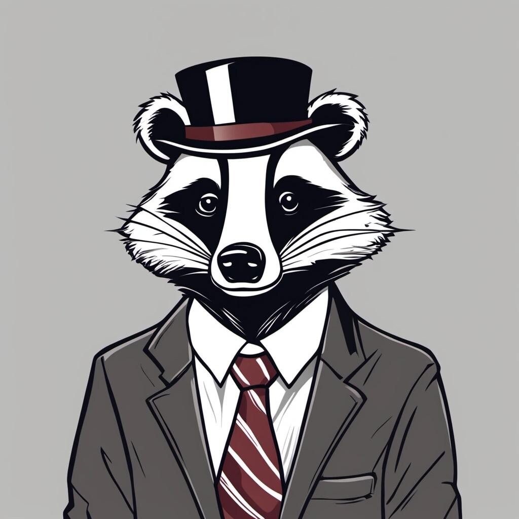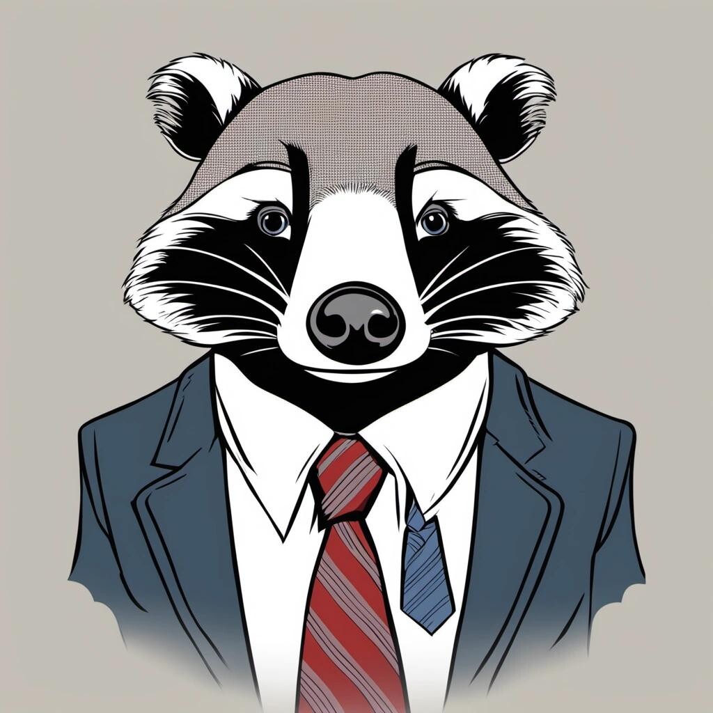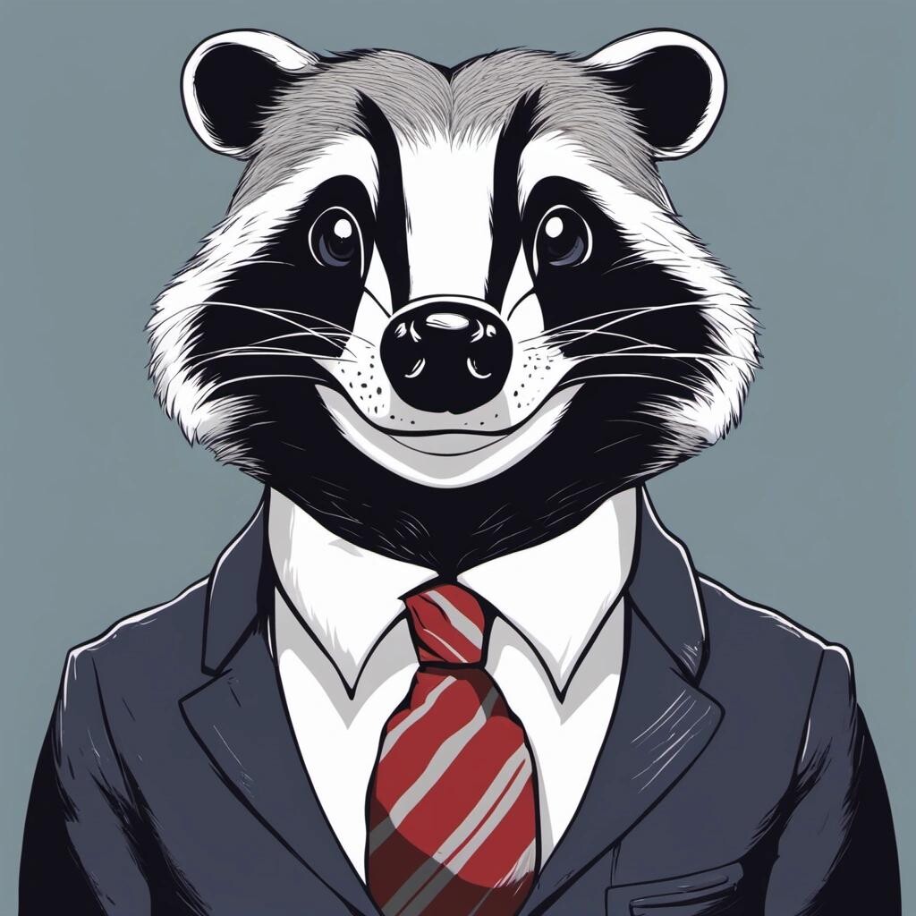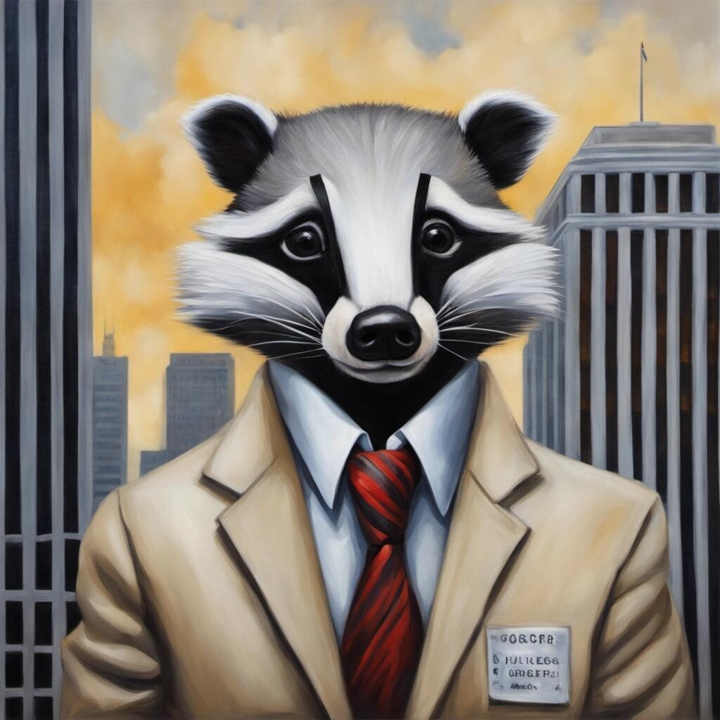 Prompt: a very worried looking anthropomorphic badger wearing a necktie