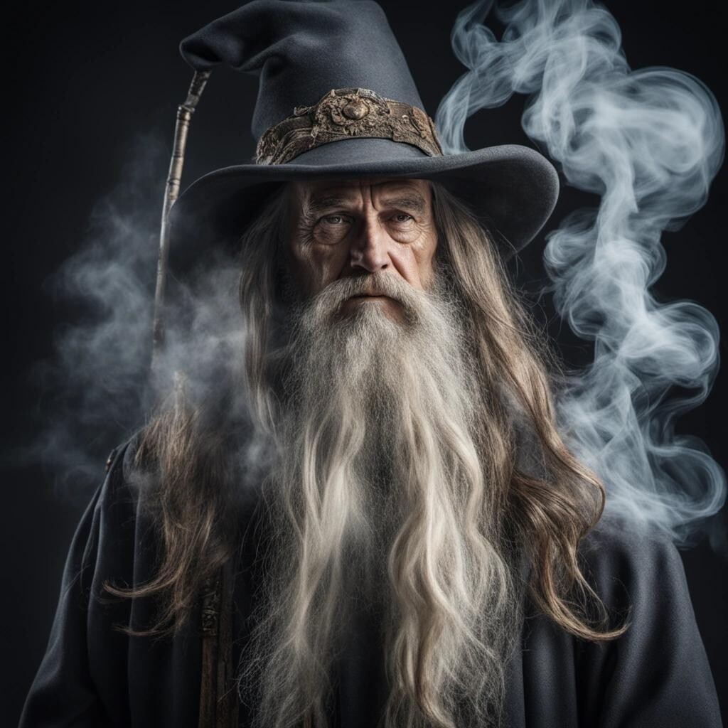 Prompt: An old wizard with long hair and a long beard dissolves into a cloud of smoke (masterpiece), best quality, expressive eyes, perfect face