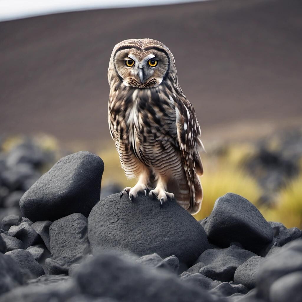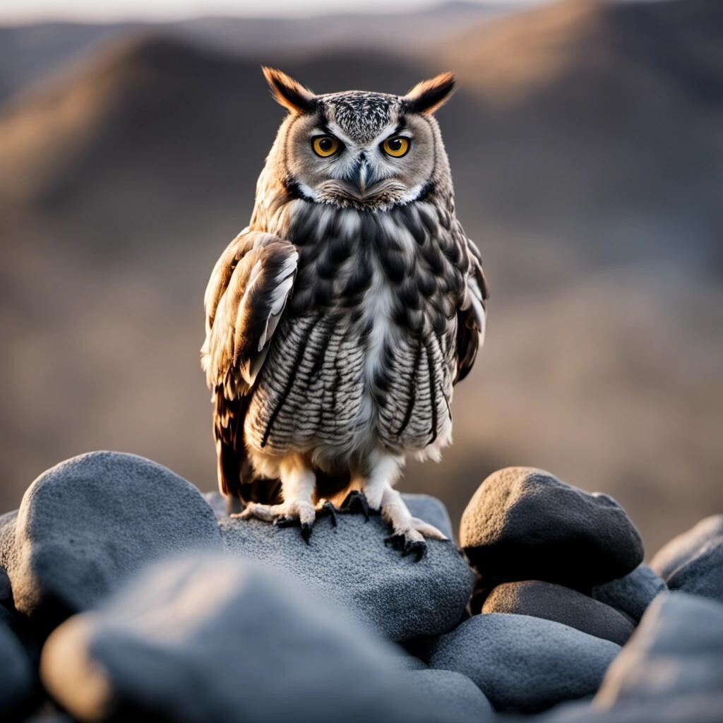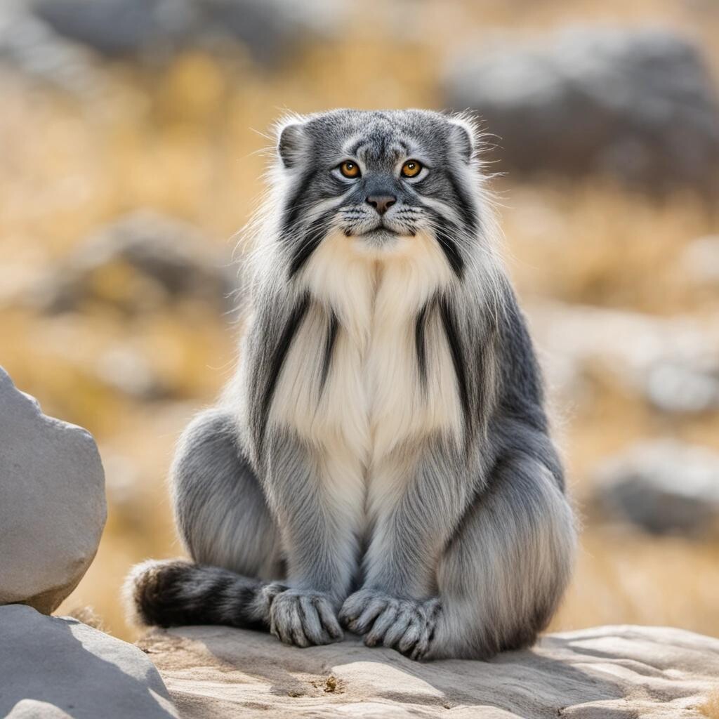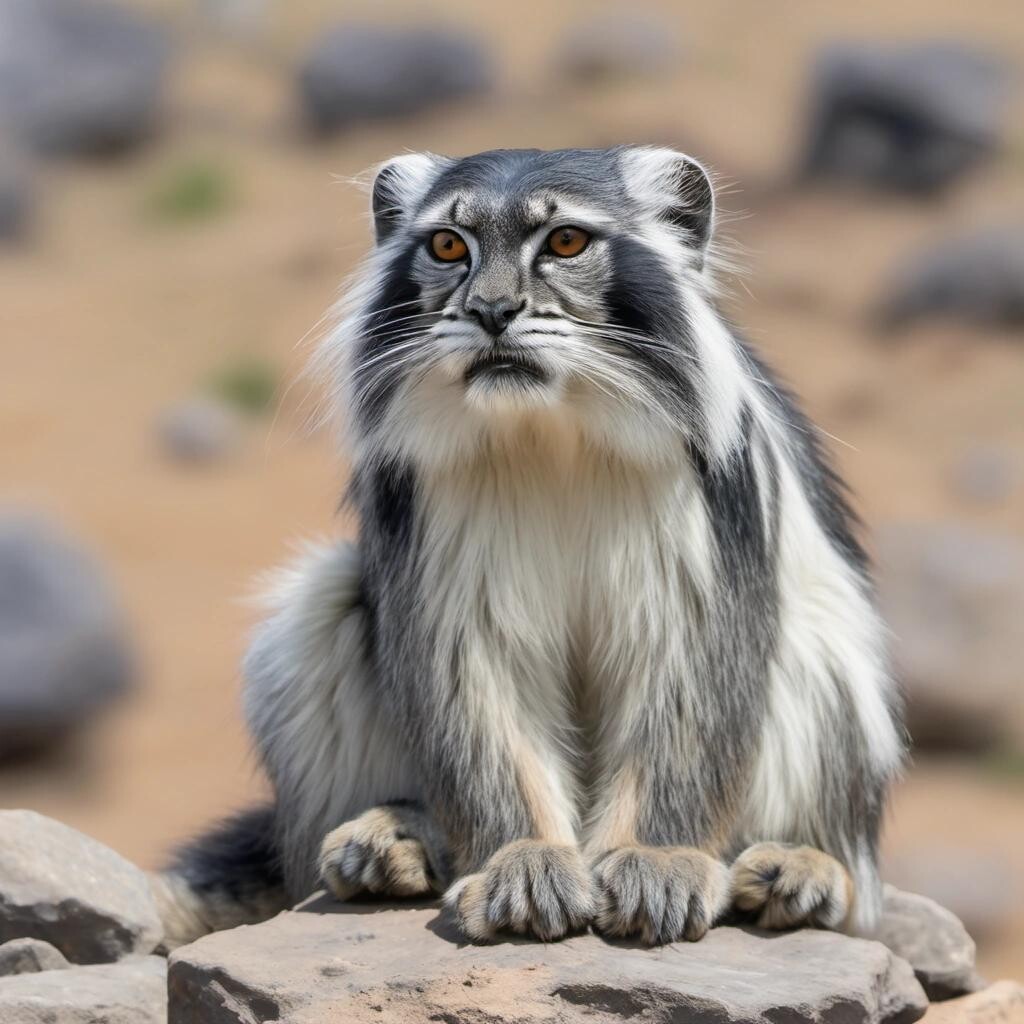 Prompt: Otocolobus manul sitting in front if a small rock in the steppe