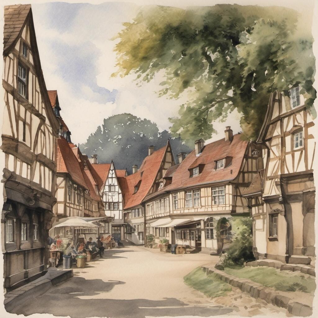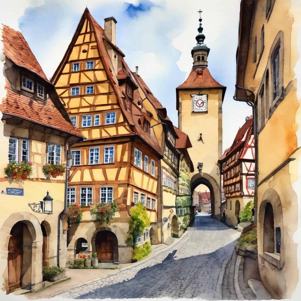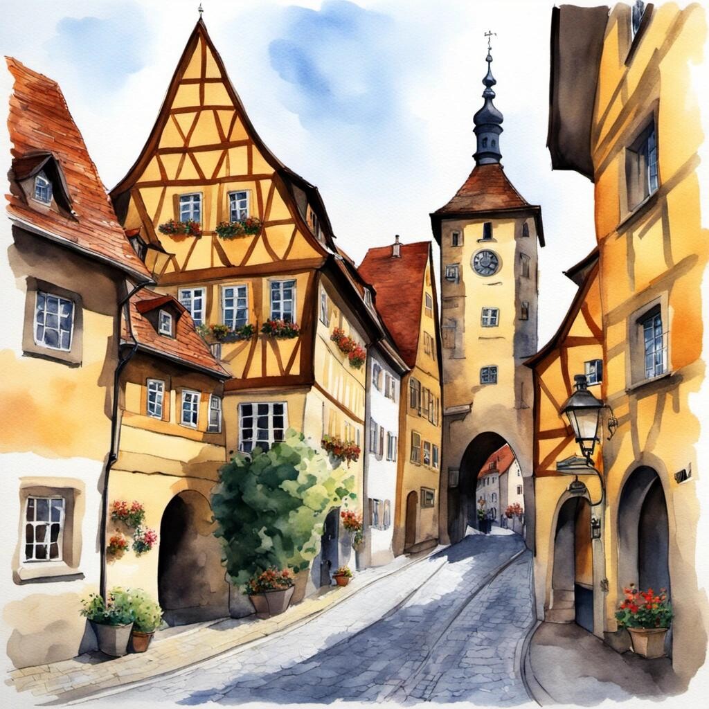 Prompt: a watercolour painting of Rothenburg ob der Tauber