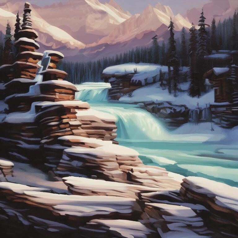 Prompt: Athabasca Falls in Jasper Alberta.