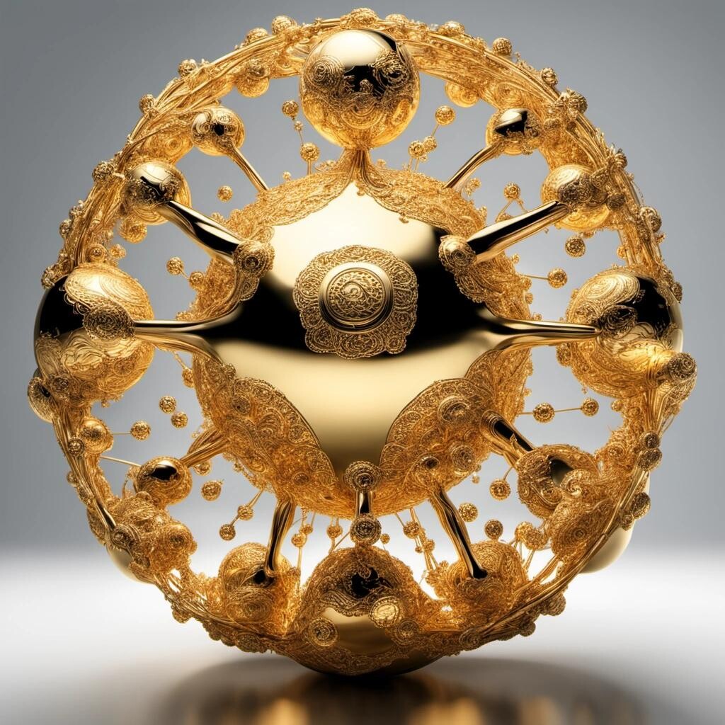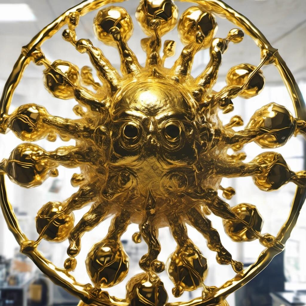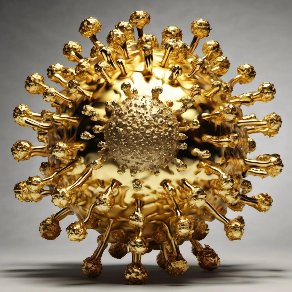 Prompt: a giant coronavirus made from pure gold