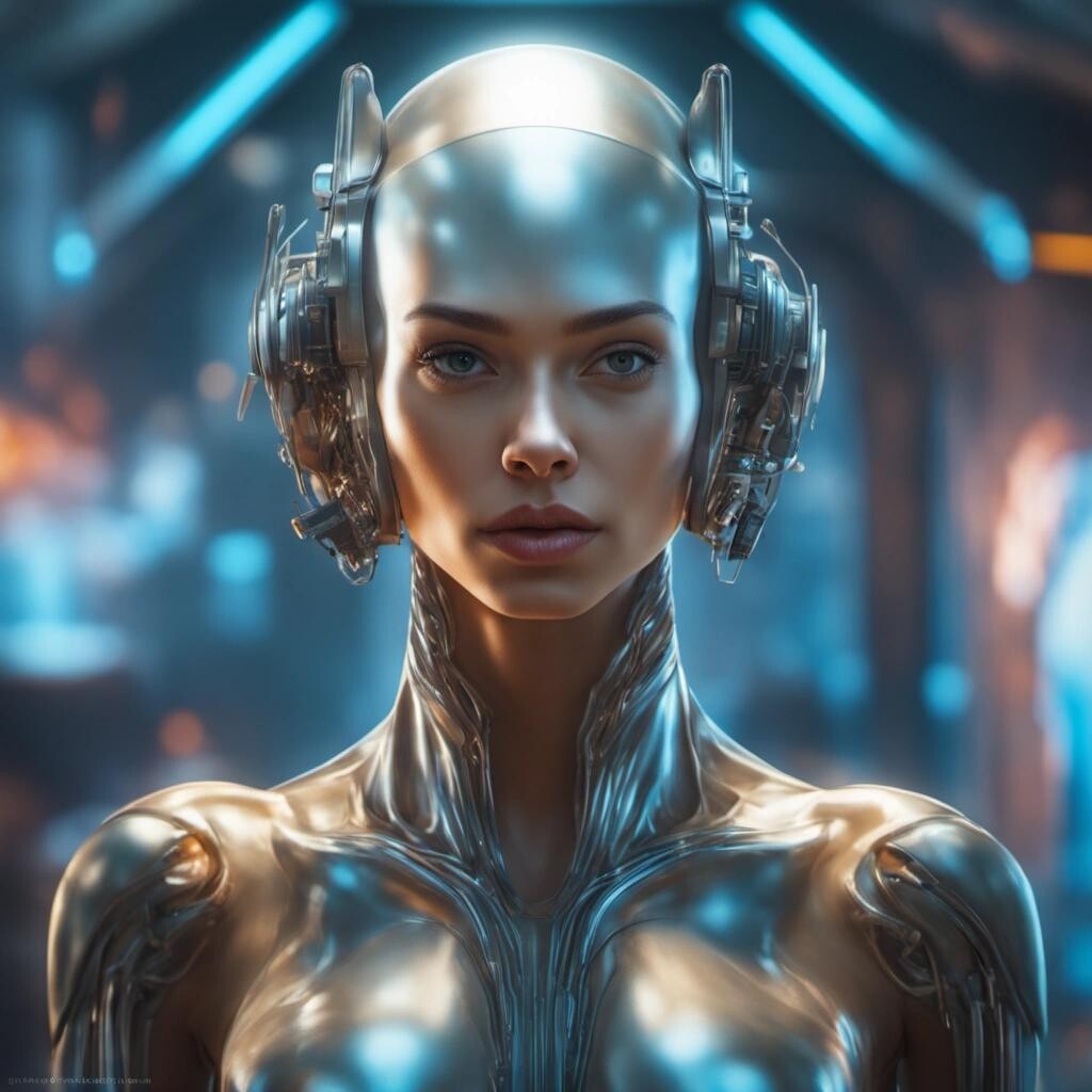 Prompt: The Pleasure Android. Fantastic art award winner. Science-fiction cinematic masterpiece. dof , 8k , oil on canvas, cinematic lighting, poster, fantastic view, high definition, hdr, cinematic postprocessing, focused Oil on panel,