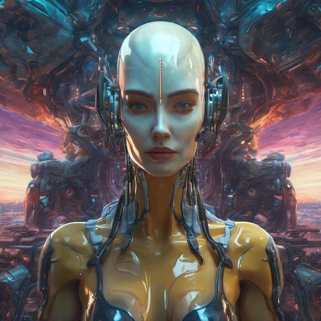Prompt: Cybord odalisque. Fantastic art award winner. Science-fiction cinematic masterpiece. dof , 8k , oil on canvas, cinematic lighting, poster, fantastic view, high definition, hdr, cinematic postprocessing, focused Oil on panel,