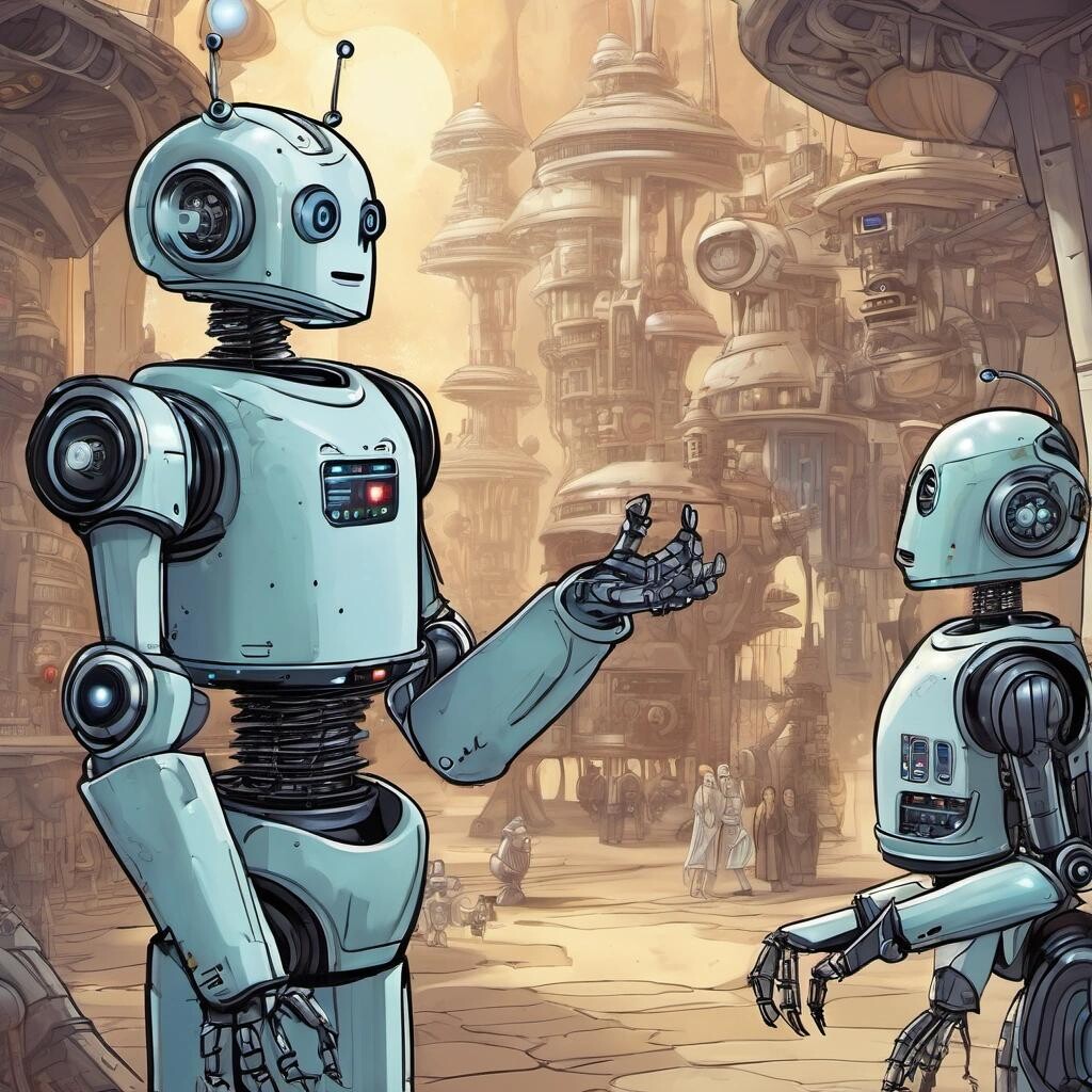 Prompt: a robot fairytale from a galaxy far away
