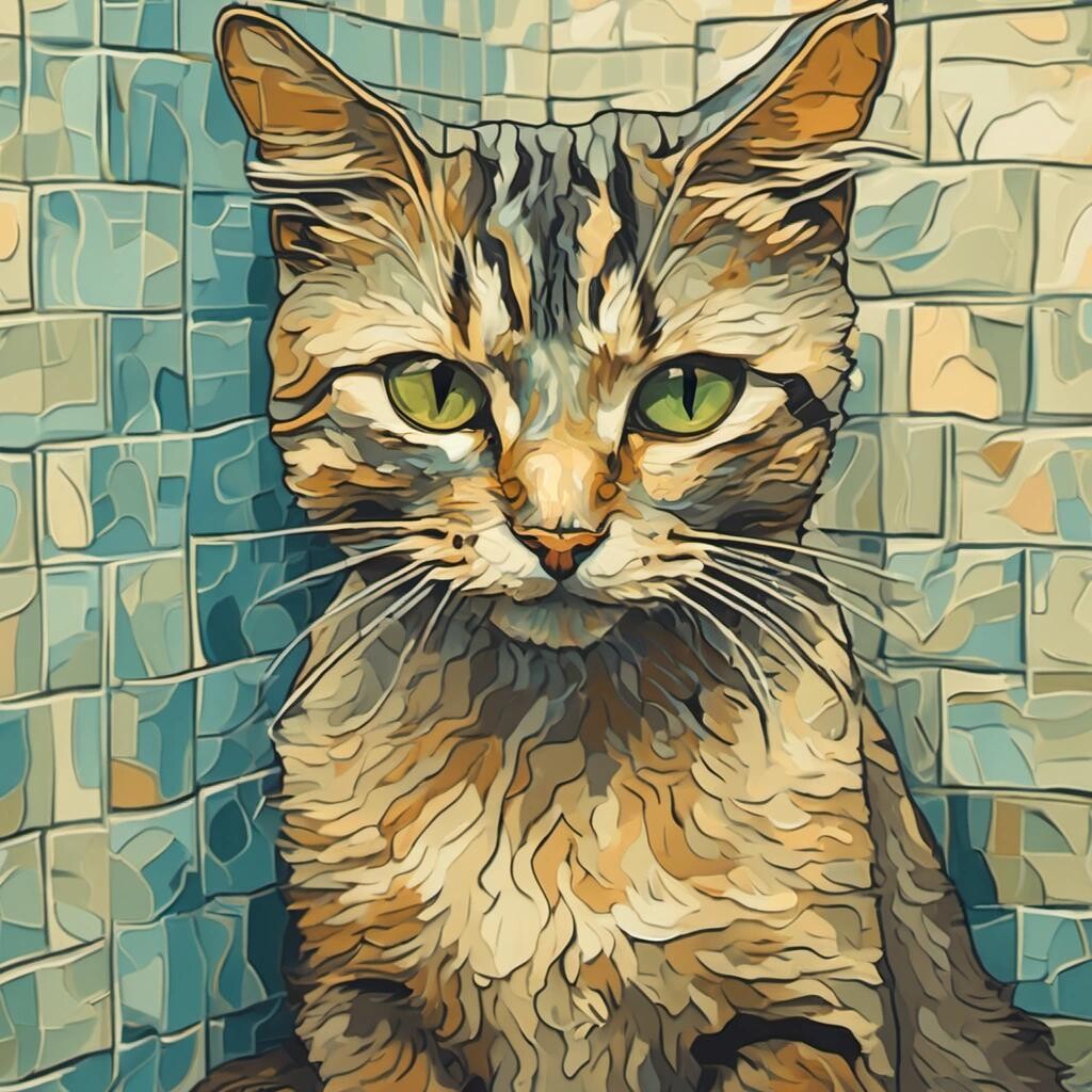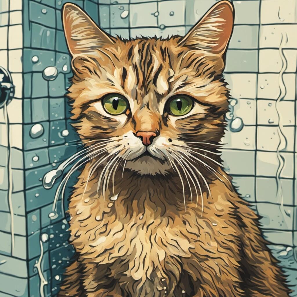 Prompt: a picture of a cat sitting in the shower in the style of Van Gogh