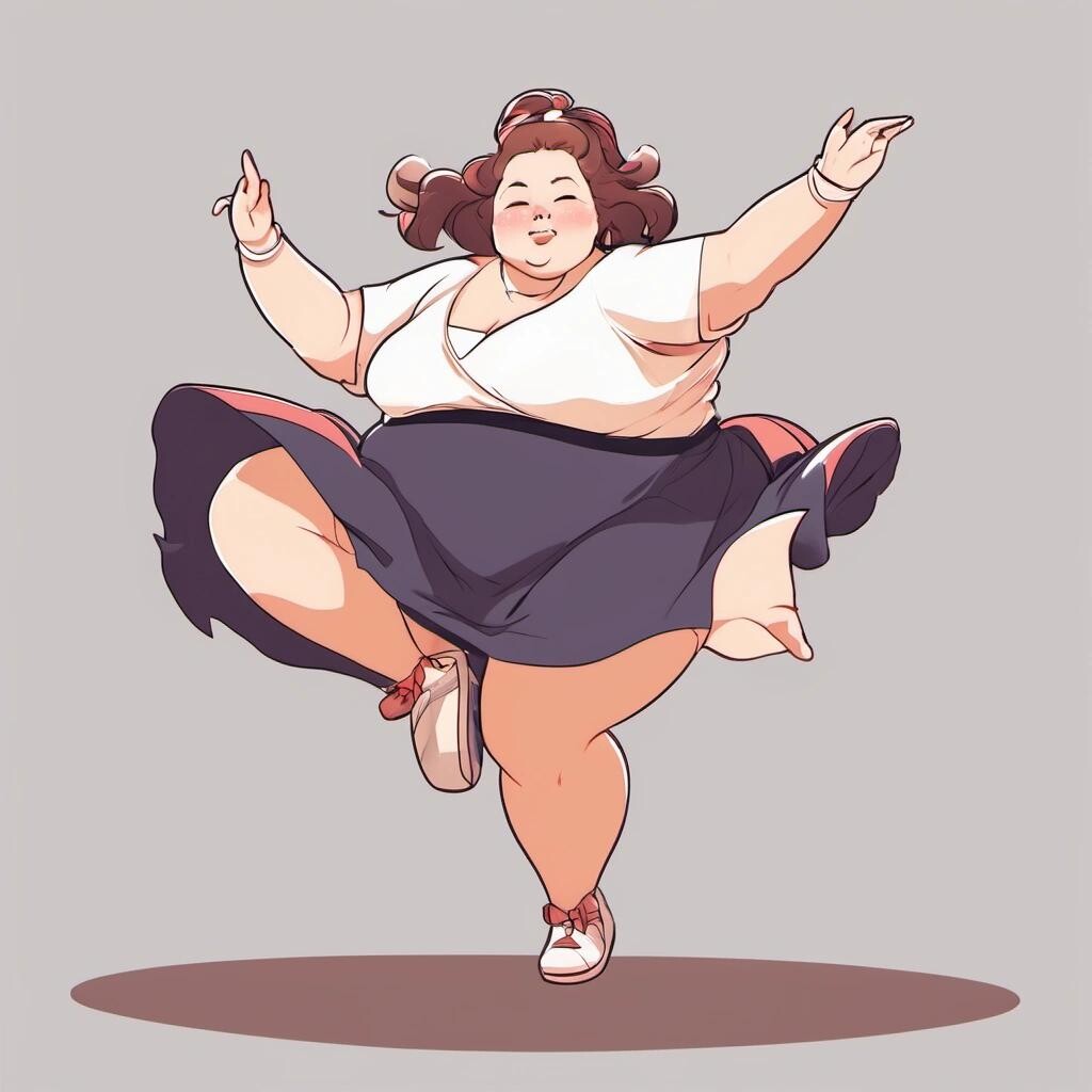 Prompt: a picture of a cute fat woman dancing in the style of an anime
