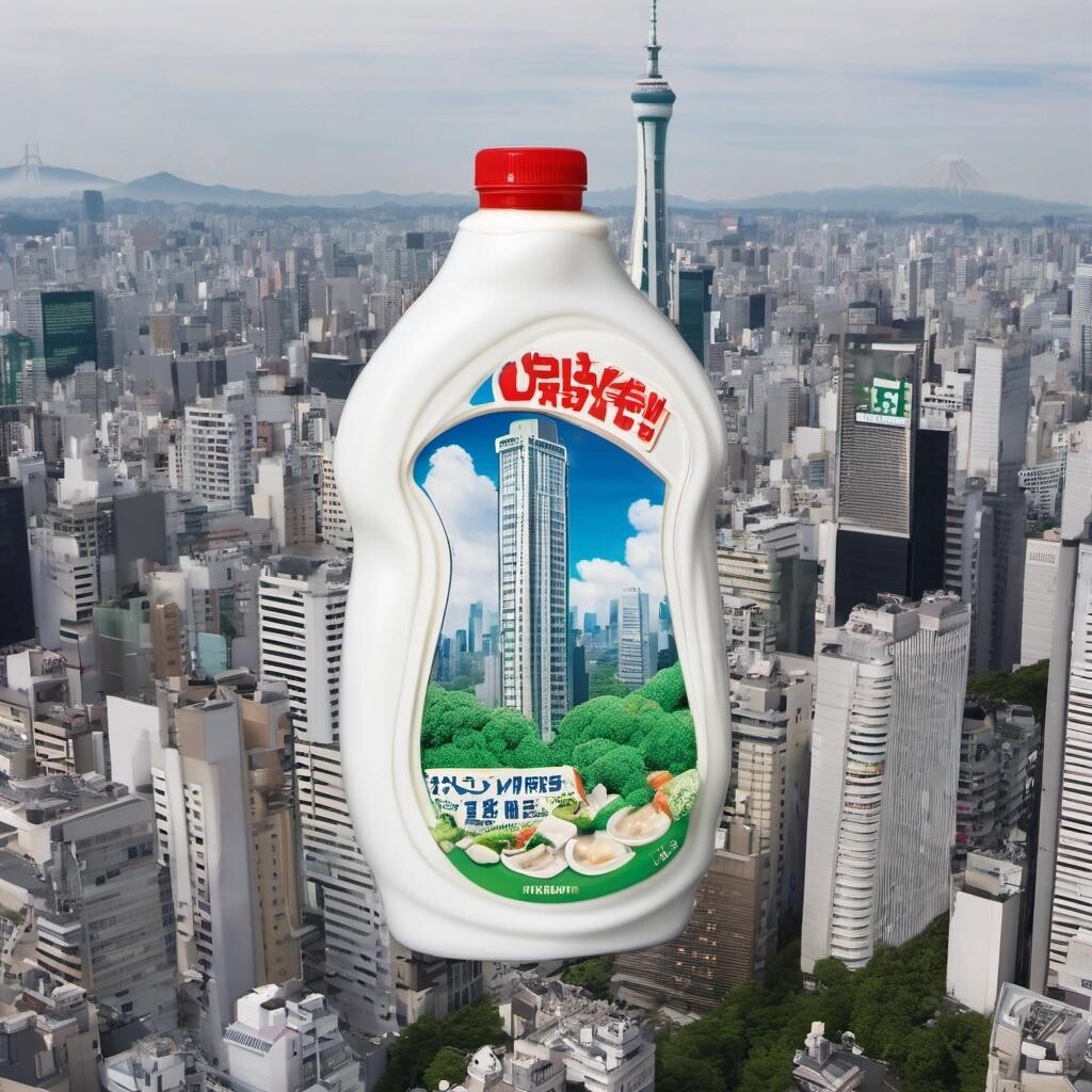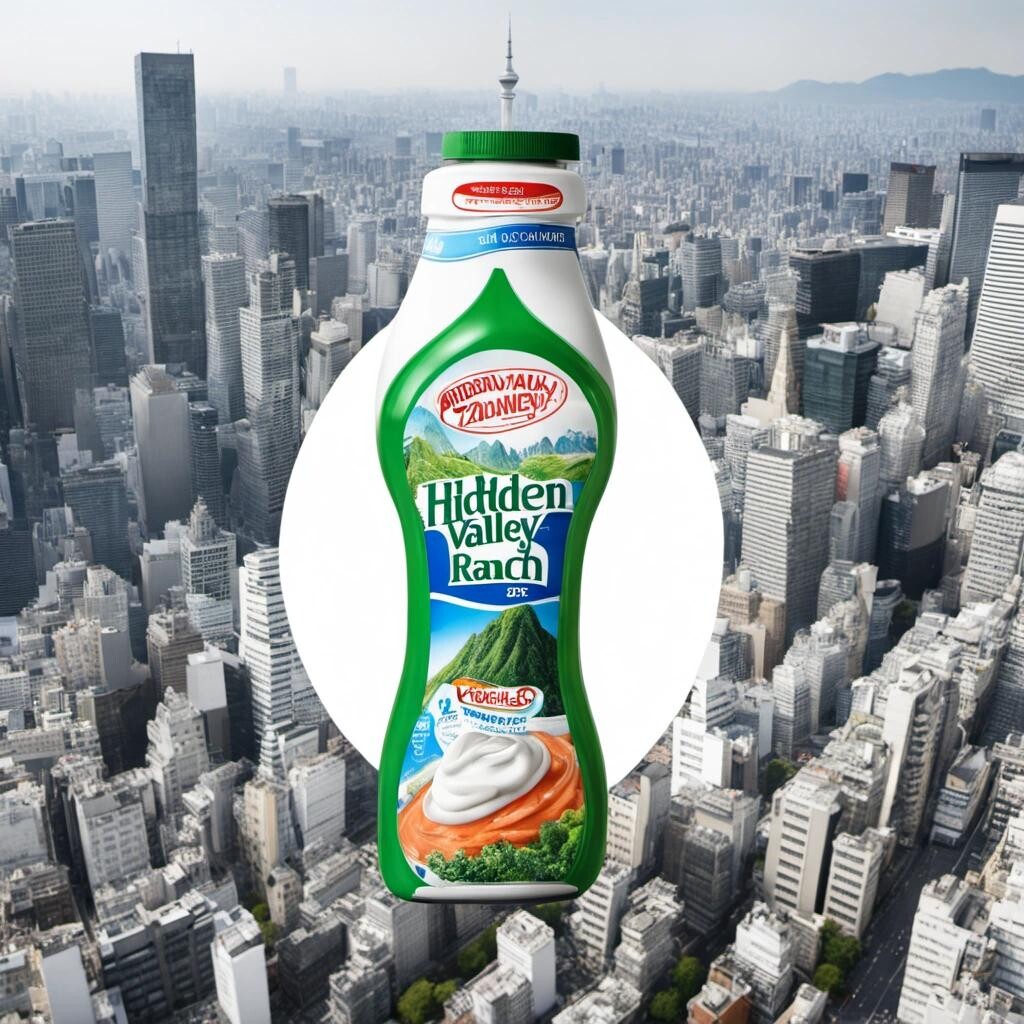 Prompt: a giant bottle of hidden valley ranch dressing destroying Tokyo.