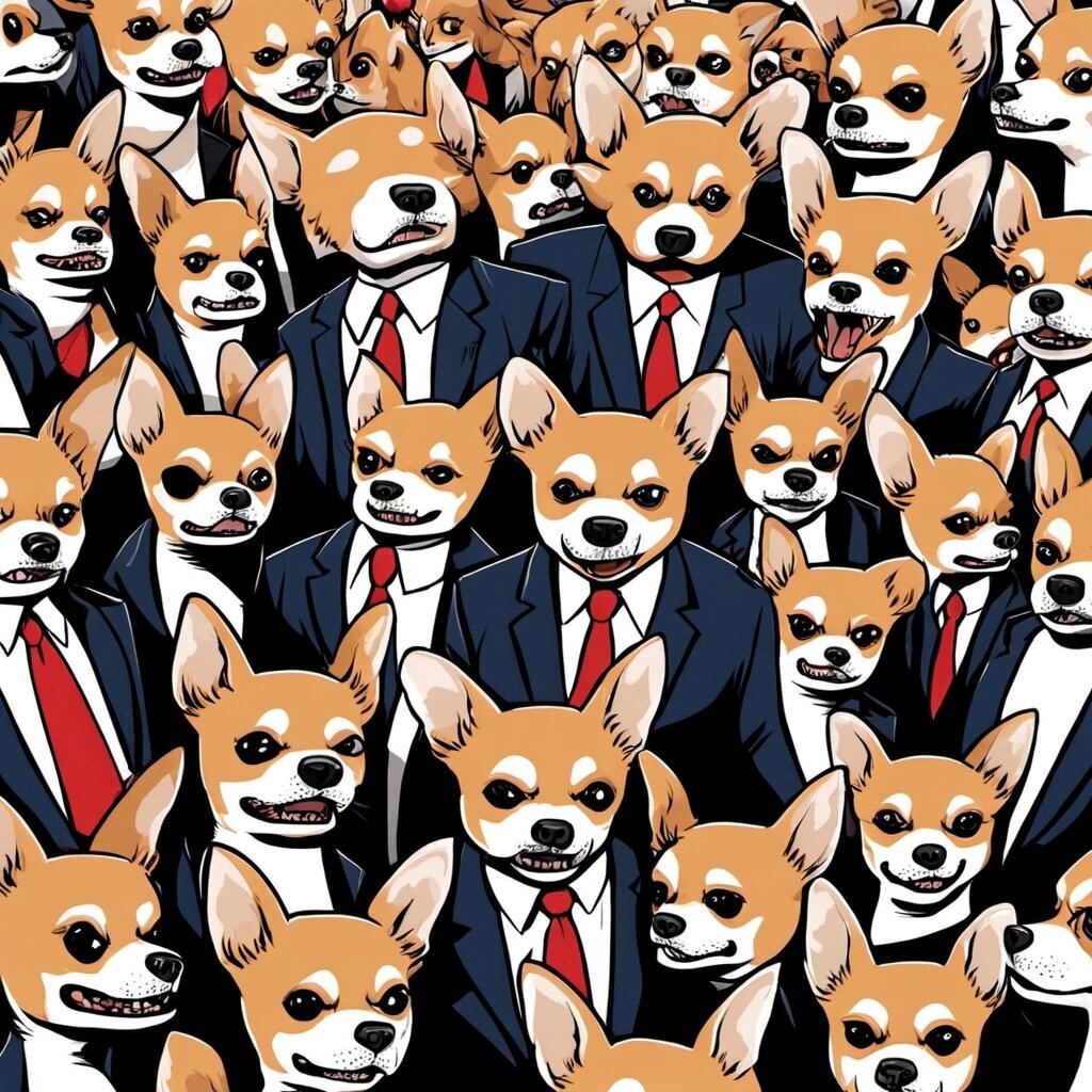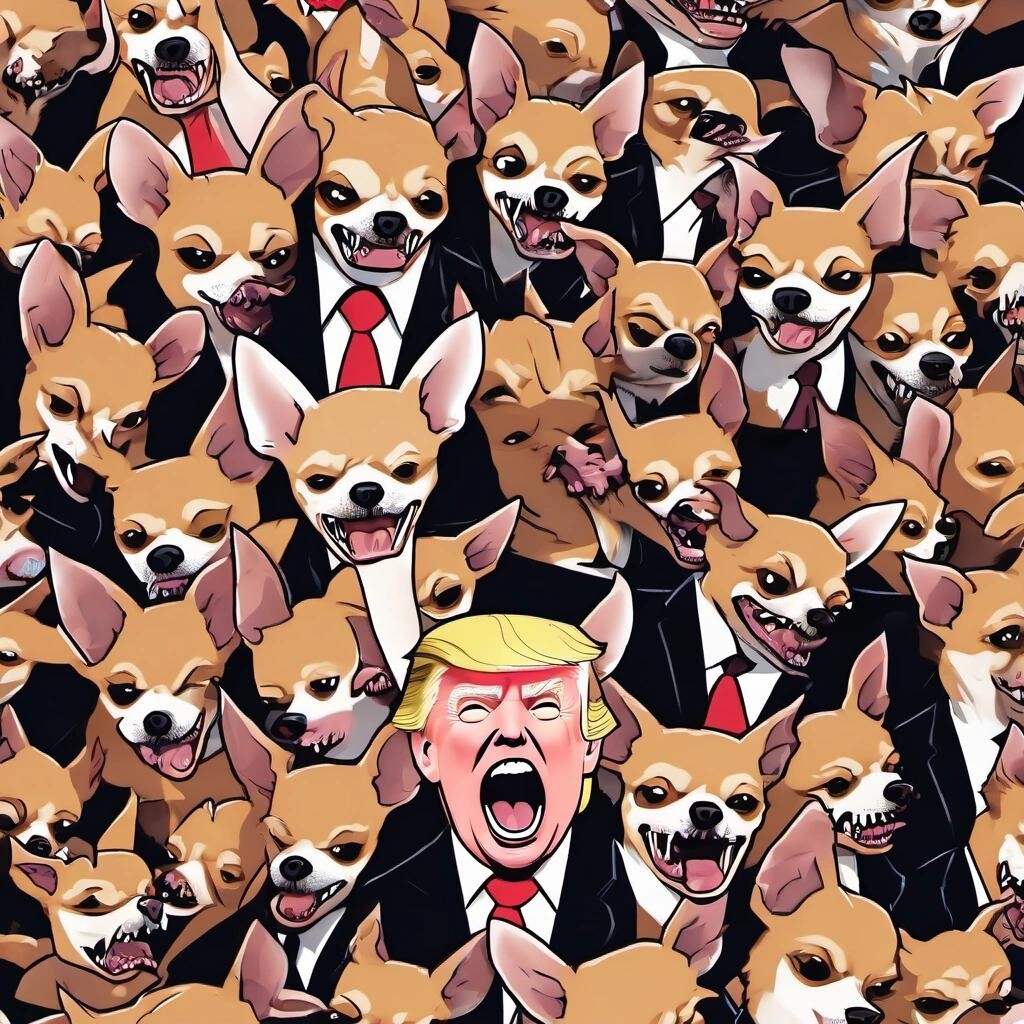 Prompt: a horde of rabid chihuahuas attacking Donald trump